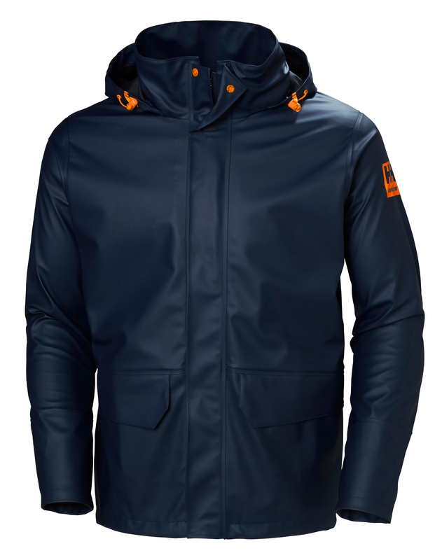 Description Gale Jacket sets the new standard in rain gear built for workers! Phthalate free fabrics ensures low environmental impact while at the same time keeping you dry no matter the weather. Features YKK® Zipper AMANN threads - German quality Adjustable hood with elastic drawcord Double main fabric front flap YKK® front zipper Napoleon pocket with YKK® zipper Hand pockets Packable hood packs into collar Neoprene cuffs Adjustable hem with elastic drawcord inside hand pocket Extended back for improved comfort EN 343:2019 - RAIN AATCC 127-2013 - WATER RESISTANCE Composition Shell: 100% Polyurethane Certifications EN 343:2019 - RAIN,AATCC 127-2013 - WATER RESISTANCE Fitting Regular Wash Care Close zippers before washing,Do not use fabric softener,Wash with similar colours Wash Icon Machine wash in luke warm water - 40°C,Do not bleach,Do not tumble dry,Do not iron,Do not dry clean
